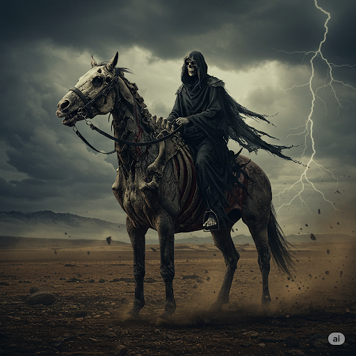 Death Rises, Yawns, Opens his closet. What to wear today? Traditional black? Or colors more chic? In white-hooded robe, A scythe on his shoulders, Death knocks politely, ever so politely. No rush. No hurry…..