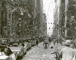 A ball descends, While a million bits Of white and colored confetti, Tossed from roofs of skyscrapers, Tumble helter-skelter, pell-mell, Prancing madly in mid-air Like comic clowns, …..
